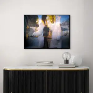 This frame encapsulates another moment of fleeting co-existences where carefully framed live reflections of buildings, people and sky mix with the staged, blending into splendid realms of imagination. The instance is captured in an unretouched single-shot image which is available in direct prints that reproduce the pure, unparalleled magic of the moment in a universe where a highly styled mannequin reigns as the silent sovereign of style and substance.