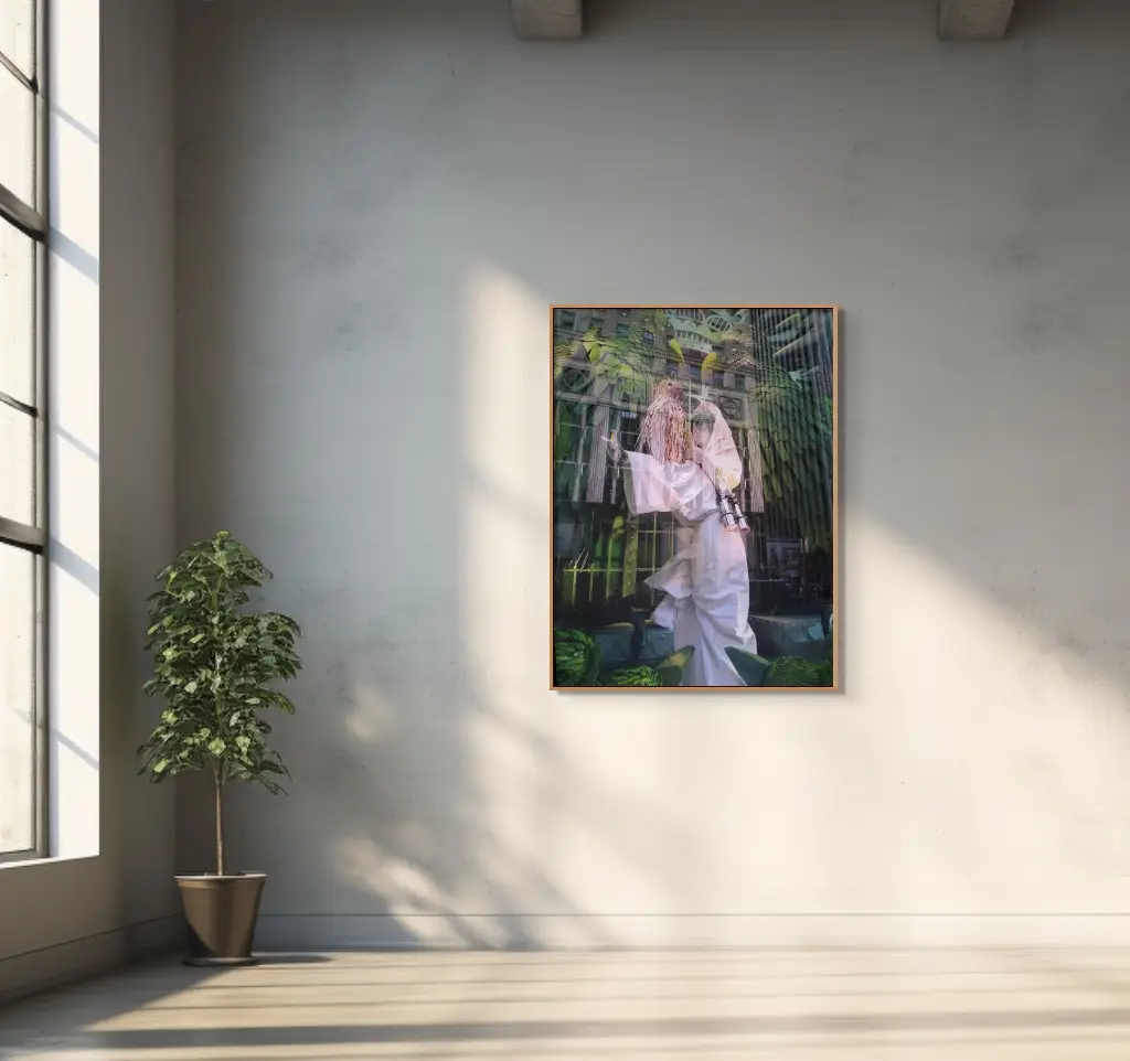 Photograph, color print on canvas, mounted on wooden stretcher, 110 cm x 80 cm. Blond wooden frame, ready to hang. Weight 6.5 Kgs. Limited edition of 2 + 1 AP.